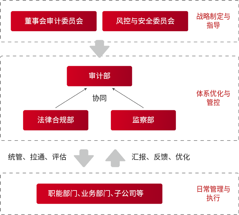 以内控体系建设、专项审计监督、日常风险防控、举报机制保障、审计整改落实、审计成果价值转化为6大审计风控核心抓手,搭建风控体系。